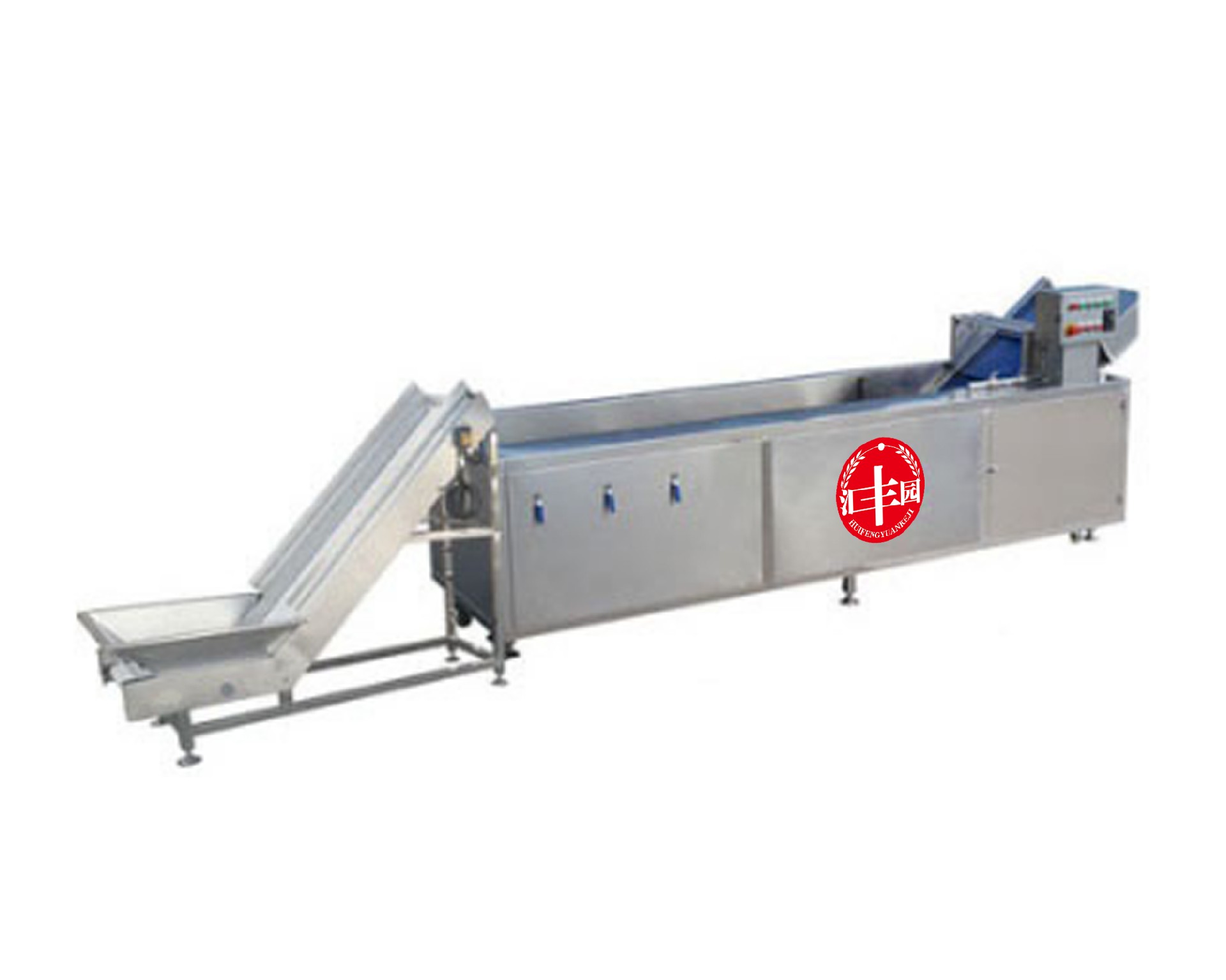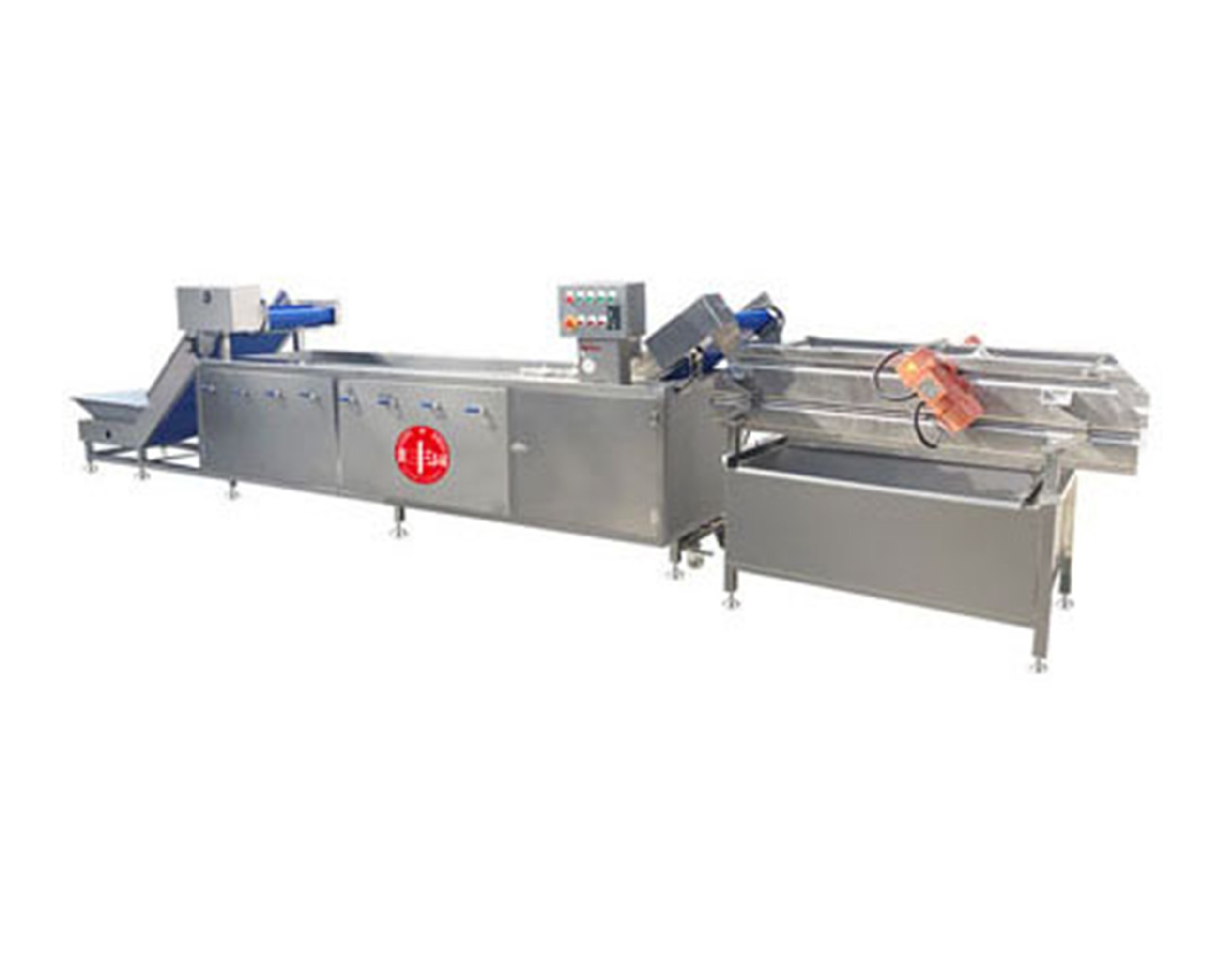 有提升機和氣泡清洗機和震動輸送機構(gòu)這三部分組成,提升機入便入料,氣泡清洗機采用高壓氣體產(chǎn)生鼓泡,循環(huán)水泵沖浪和提升高壓 噴水三重清洗。輸送帶無極可調(diào)、臭氧殺毒等功能以及全機身密封包邊處理。美觀大方,做工精良。是目前市面上先進的洗菜設備。有 效分離蔬菜上面粘連的泥沙,雜質(zhì)。清洗過程噴淋和高壓噴嘴持續(xù)供水,供水量可調(diào),方便客戶根據(jù)蔬菜處理量及清潔程度進行靈活調(diào) 節(jié)。采用振動式輸送替代傳統(tǒng)輸送帶式輸送,結(jié)構(gòu)更簡單,比傳統(tǒng)輸送帶減少清洗時間使用更方便。采用進口減震臂,保證在持續(xù)穩(wěn)定 的低頻震動輸送過程中,有效瀝除多余水分,并為下一道脫水工序提供預脫水功能。 | |